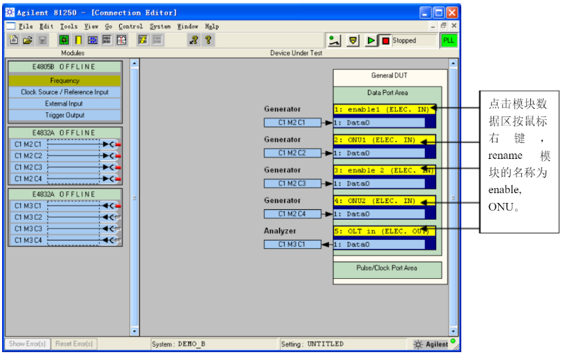圖中顯示的模塊E4832A測試速率只能覆蓋到622Mb/s對于GEPON和GPON的器件,建議采用E4861A/E4862A/E4863A2.7Gb/s的模塊或E4861B/E4862B/E4863B3.35Gb/s的模塊。此界面只是用于界面演示。