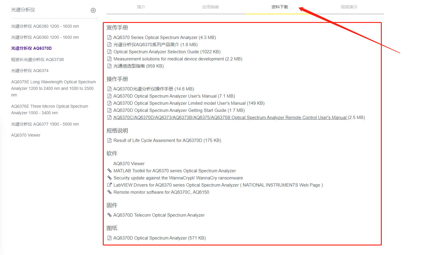 三、進(jìn)入產(chǎn)品詳情頁面,點擊“下載技術(shù)資料”