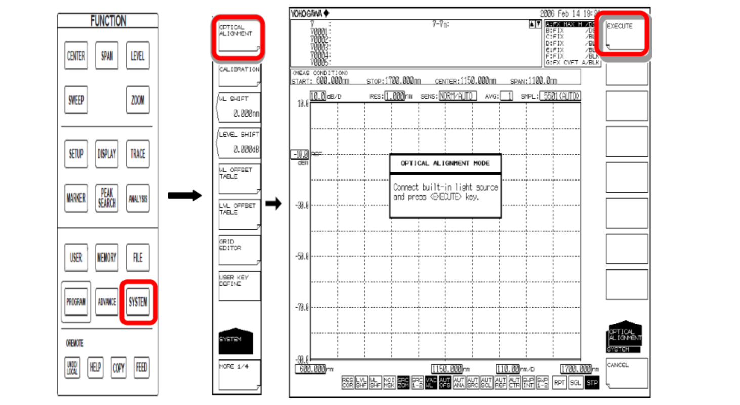 ③按 EXECUTE 軟鍵,執(zhí)行波長校準(zhǔn)。 校準(zhǔn)結(jié)束后,返回之前得畫面。