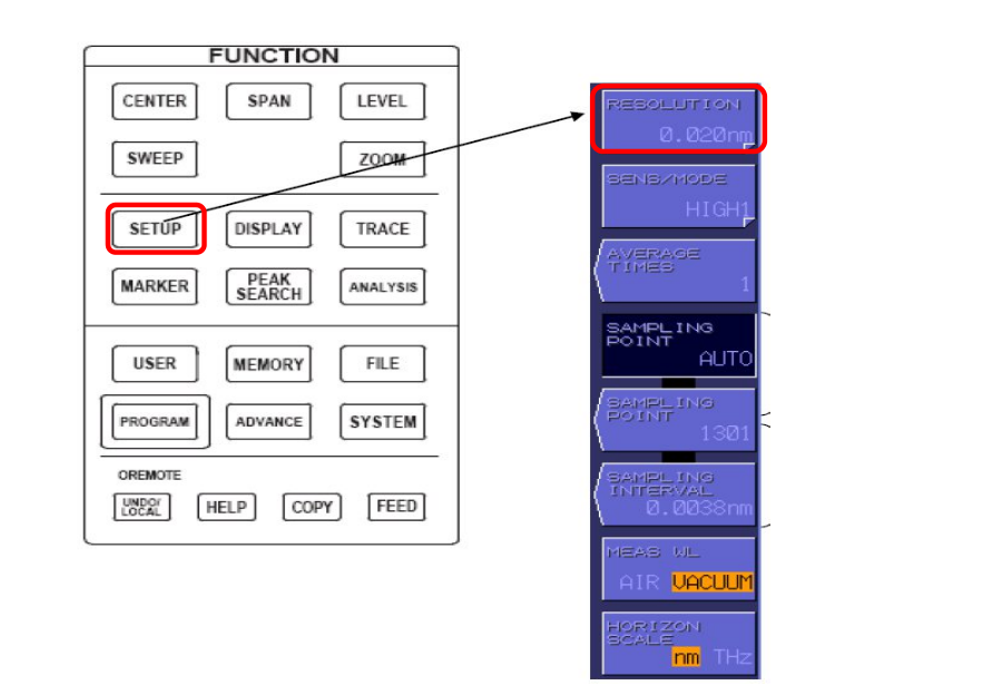 ④按 SETUP 鍵,設(shè)置分辨率為最高精度 0、 02nm。