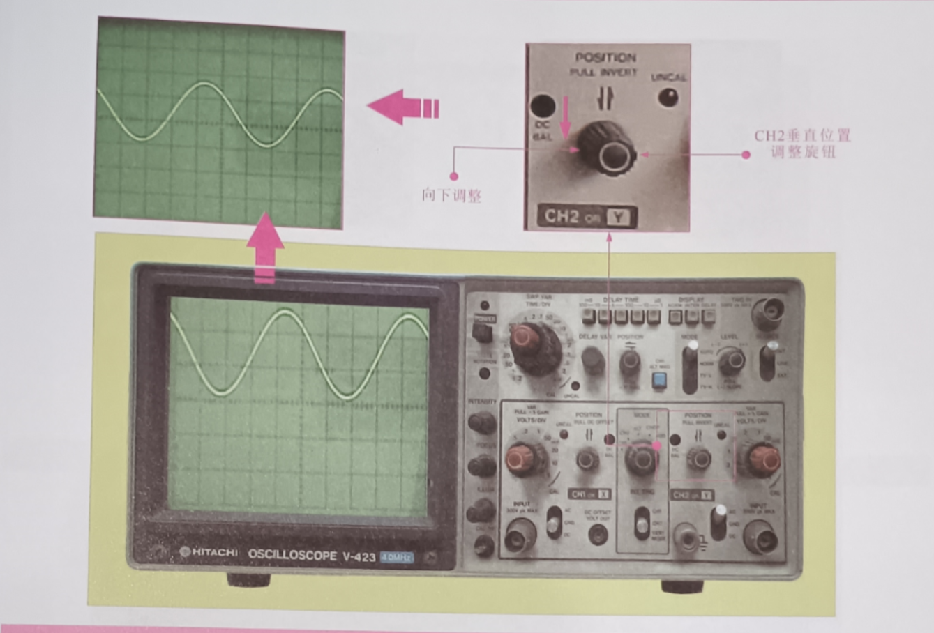 CH2垂直位置調(diào)整旋[(CH2) POSITION PULLINVERT: 用于適當(dāng)動(dòng)波形位置以便于觀察,如圖所示。