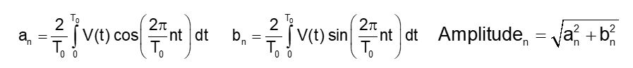 當我們有這種人為重復的波形時,我們可以應用DFT的功率來數學計算頻譜中的每個頻率分量。以下是用于計算每個頻率分量的幅度和相位的公式: