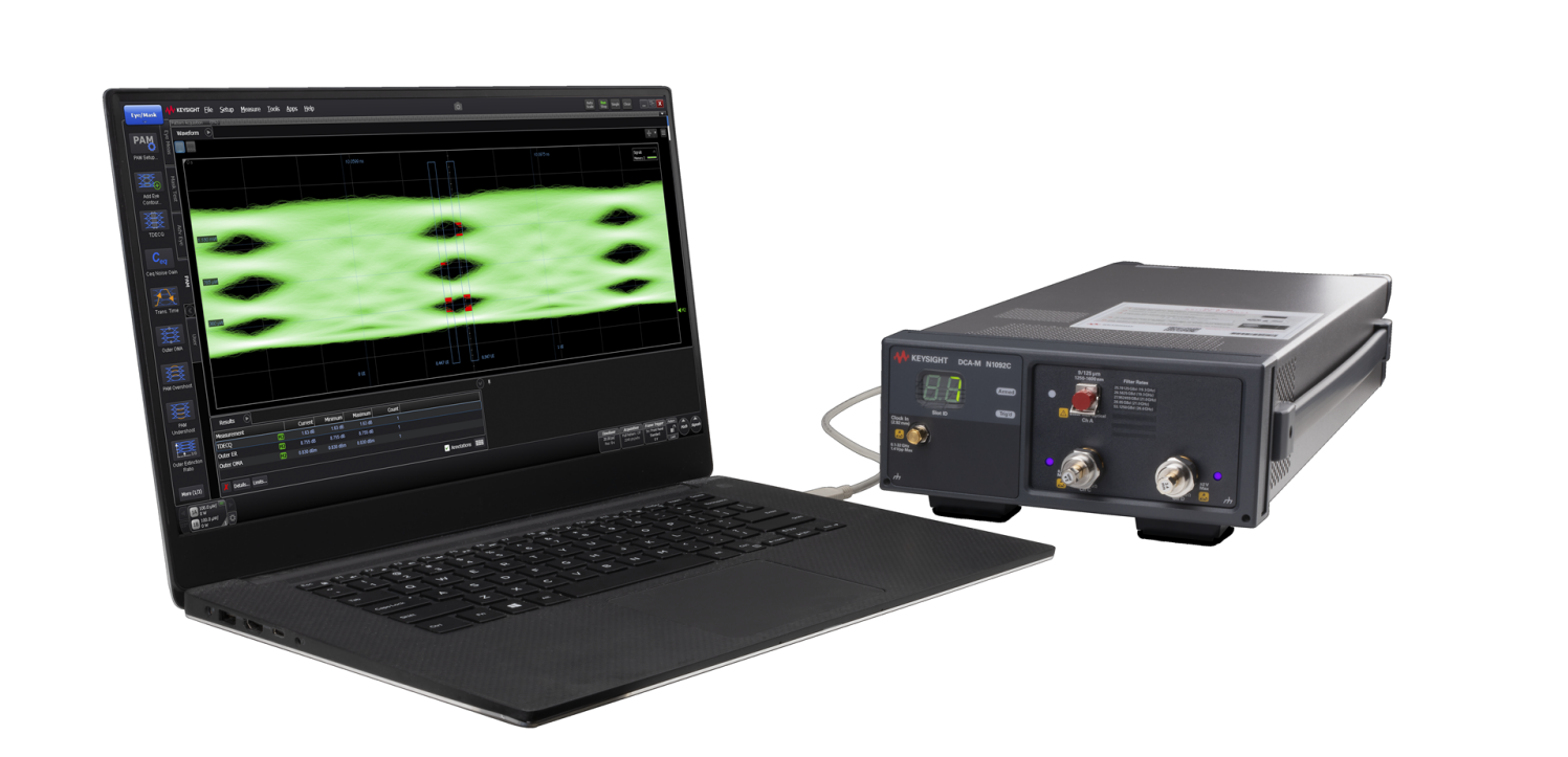 ? N1092C:一款 DCA-M 采樣示波器,配有一個(gè)光通道和兩個(gè)電通道。N1092C 適用于驗(yàn)證光發(fā)射機(jī)是否符合通信標(biāo)準(zhǔn)。光通道帶寬為 >40 GHz(選件 40A)、電通道帶寬為 50 GHz。