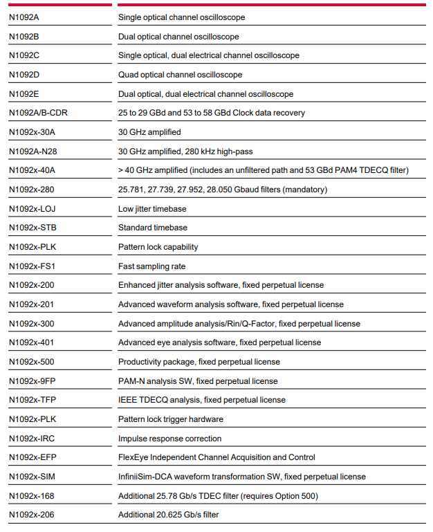 keysight N1092系列有哪些型號(hào)?