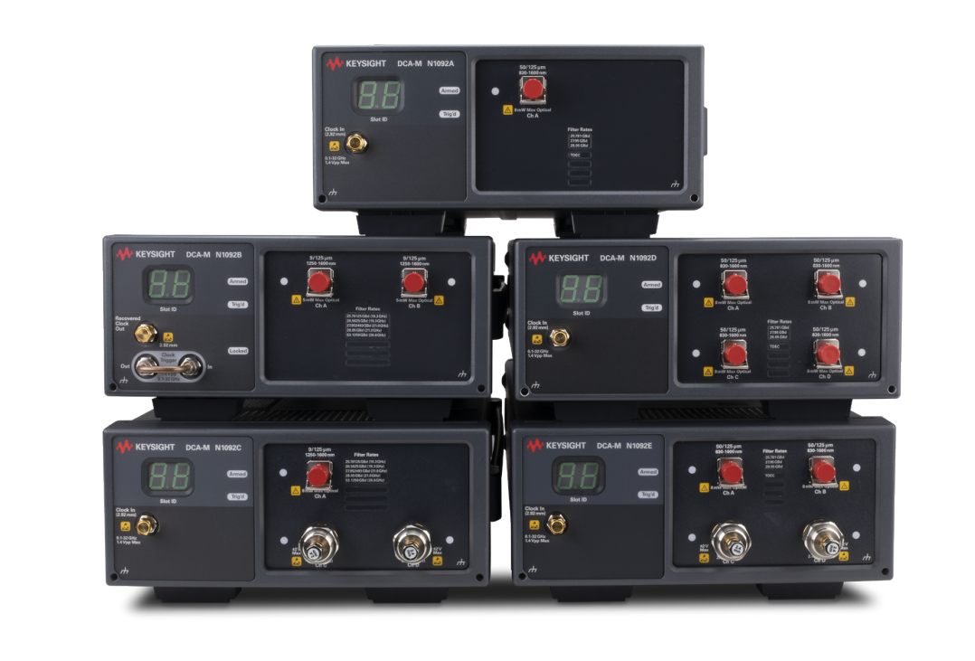 ? N1092E:一款 DCA-M 采樣示波器,配有四個(gè)光通道和兩個(gè)電通道。N1092E 適用于驗(yàn)證光發(fā)射機(jī)是否符合通信標(biāo)準(zhǔn)。光通道帶寬為 >40 GHz(選件 40A)、電通道帶寬為 50 GHz。