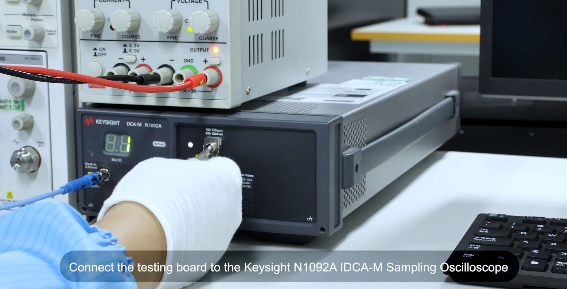 2. 將待測(cè)的25G光模塊插入BERT,并通過(guò)光纖跳線連接到示波器。