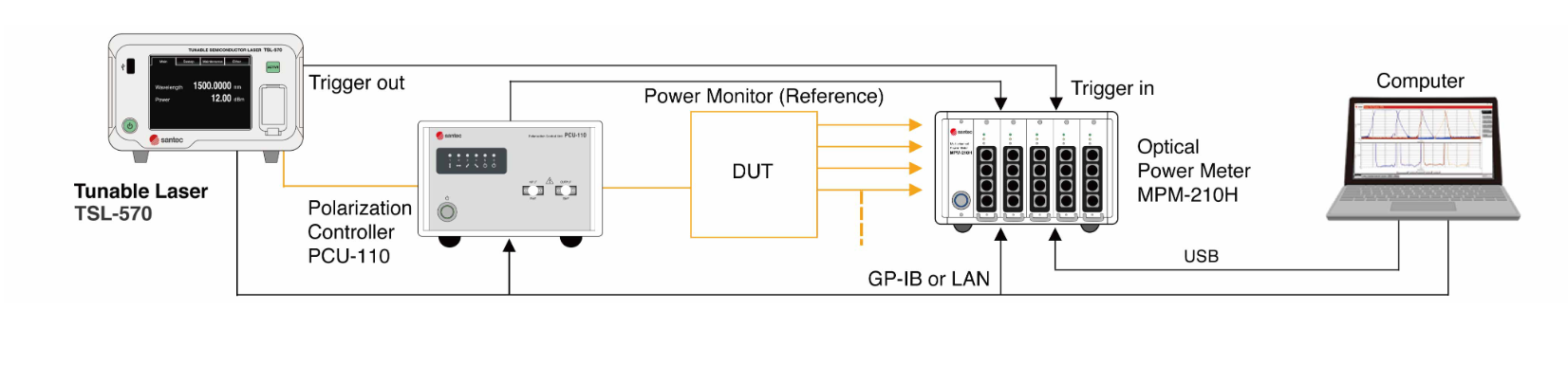? 光學(xué)器件掃描測(cè)試系統(tǒng):該系統(tǒng)由可調(diào)諧激光器、偏振控制器、光功率計(jì)以及相應(yīng)的軟件組成,可對(duì)IL/WDL/PDL等光學(xué)器件進(jìn)行測(cè)試,適用于R&D和產(chǎn)線。該系統(tǒng)通過實(shí)時(shí)校正和穆勒矩陣法提供高精度的IL/WDL/PDL分析。