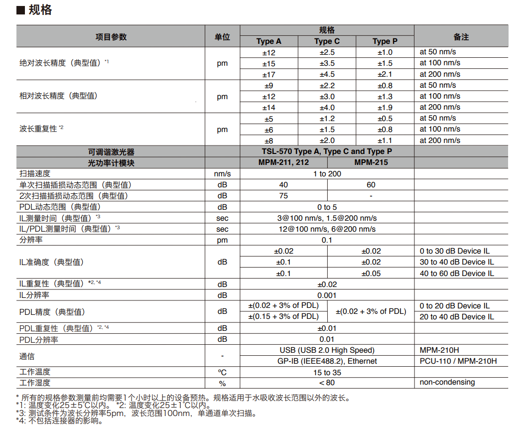 ? 高性能可調(diào)諧激光器TSL-570:該激光器是Santec的新品,具有高精度、高分辨率、高速的特點(diǎn),可用于WDL測(cè)試。該激光器可以和Santec的光功率計(jì)、光開關(guān)、偏振控制器無縫搭配,為WDL和PDL測(cè)試提供完整的解決方案