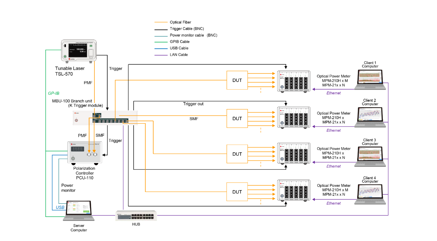 ? 多工位快速掃描測(cè)試系統(tǒng):該系統(tǒng)通過將Swept Test System與Multi Branch Unit相組合,可進(jìn)一步提高測(cè)試效率。該系統(tǒng)可以同時(shí)對(duì)多個(gè)光器件進(jìn)行IL/WDL/PDL測(cè)試,支持用戶圖形界面及DLL。