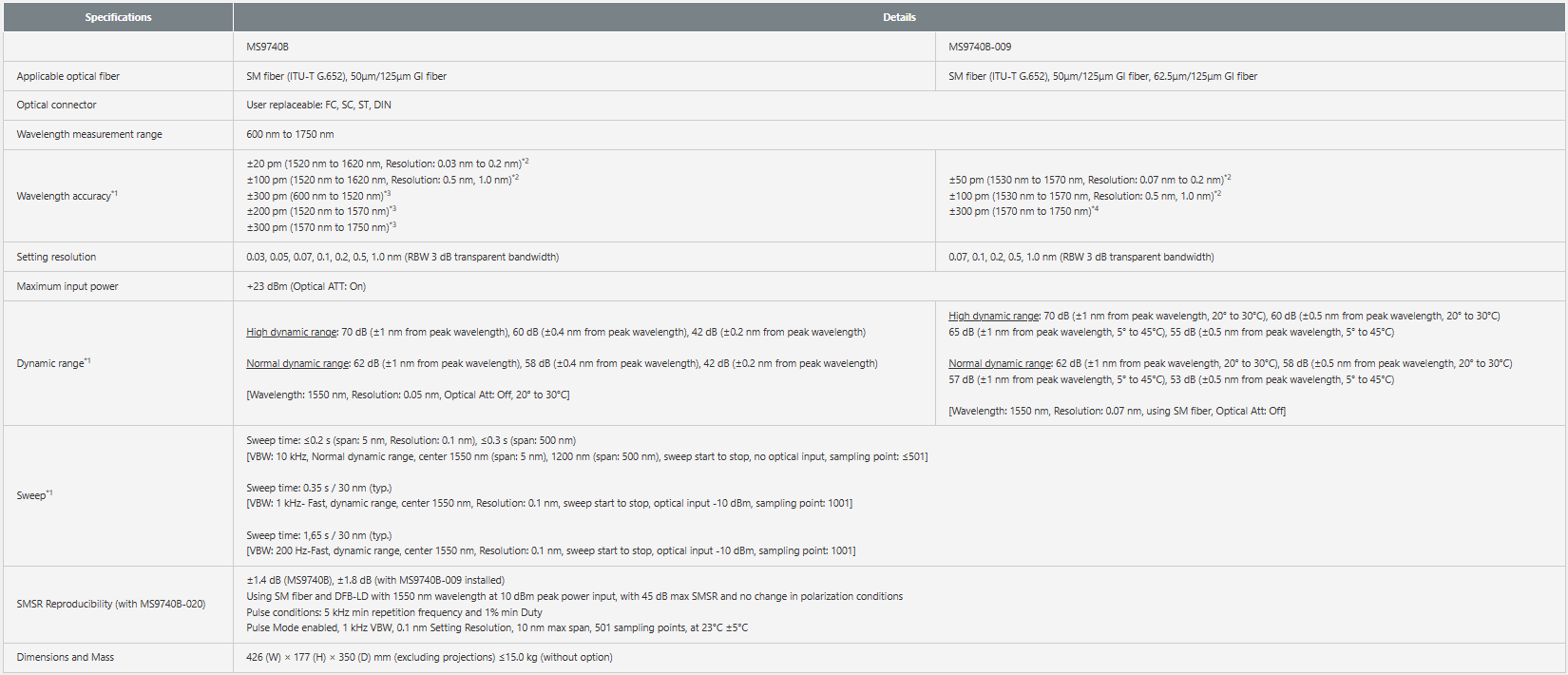 MS9740B是Anritsu公司生產(chǎn)的一款光譜分析儀,主要用于測量和分析光源的光譜特性。該設(shè)備的主要參數(shù)包括: