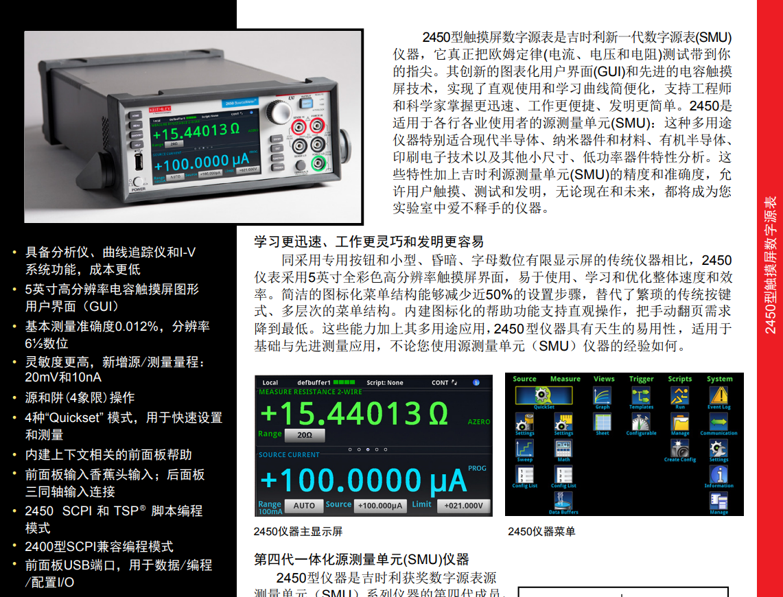 吉時(shí)利2450相比于2400,在操作界面、測量范圍、基本精度以及附加功能方面都有所改進(jìn)和提升,使其更適合于需要高精度測量和復(fù)雜測試流程的應(yīng)用場景。