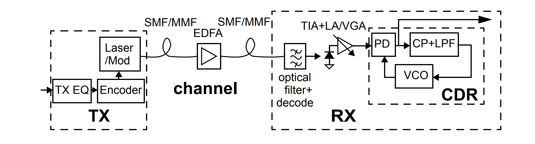 CDR在光通信系統(tǒng)中也扮演著重要角色,它能夠從光信號中提取時鐘信息,進(jìn)行同步處理,以及去除傳輸過程中的抖動,從而保證數(shù)據(jù)的準(zhǔn)確恢復(fù)。