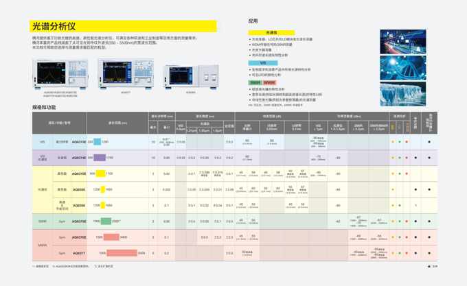 橫河AQ6373E/AQ6373B 光譜分析儀是一款專為可見光波長測量優(yōu)化的高性能光學(xué)光譜分析儀。它覆蓋的波長范圍在350 nm至1200 nm之間,具有高分辨率和近距離動態(tài)范圍,適用于醫(yī)療、生物和材料加工等領(lǐng)域的光譜測量需求。