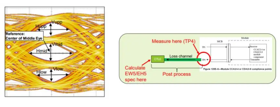 測試內(nèi)容:PAM4電壓力信號由眼圖對稱模板寬度ESMW,眼寬EW,眼高EH和附加正弦抖動SJ的頻率和幅度來表征。