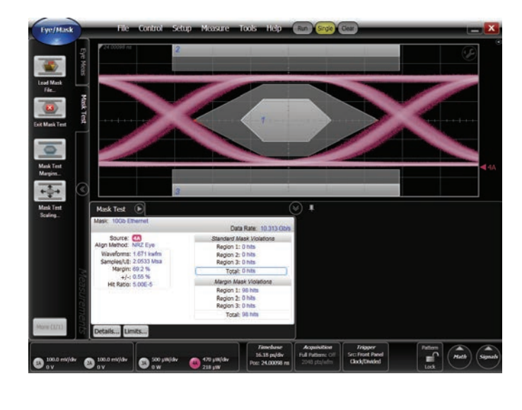 眼圖分析和屏蔽測試(每臺86100D的標準配置)快速準確地鑒定高速發(fā)射器和收發(fā)器。準確地鑒定高速發(fā)射器和收發(fā)器。眼圖/掩碼模式提供。