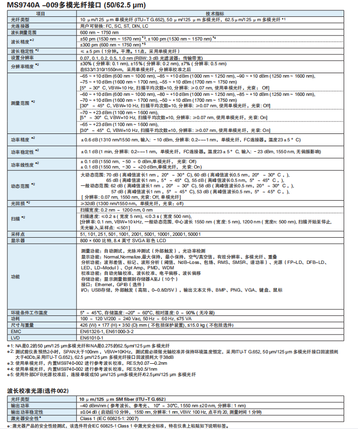 MS9740A在距峰值波長0.2nm外42dB的動態(tài)范圍保證了100GH7和50GH7間隔WDM信號的精確測量。MS9740A最多可分析300個信道的信號,所有WDM 信號分析需要的信息如中心波長、功率、OSNR等都可以顯示在同一界面上。由于具有詳細(xì)的噪聲位置選擇,所以當(dāng)作OSNR分析時,可以選擇兩種估算方法:兩點(diǎn)插入法和噪聲擬合插入法,兩點(diǎn)法可以自動分析Dip點(diǎn),但是到中心波長的距離可以人為指定。