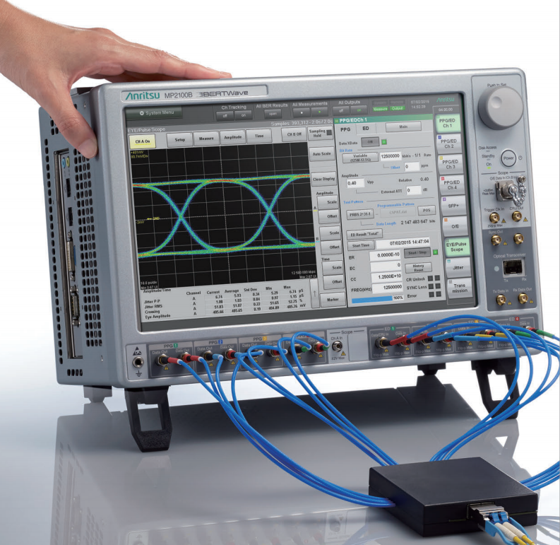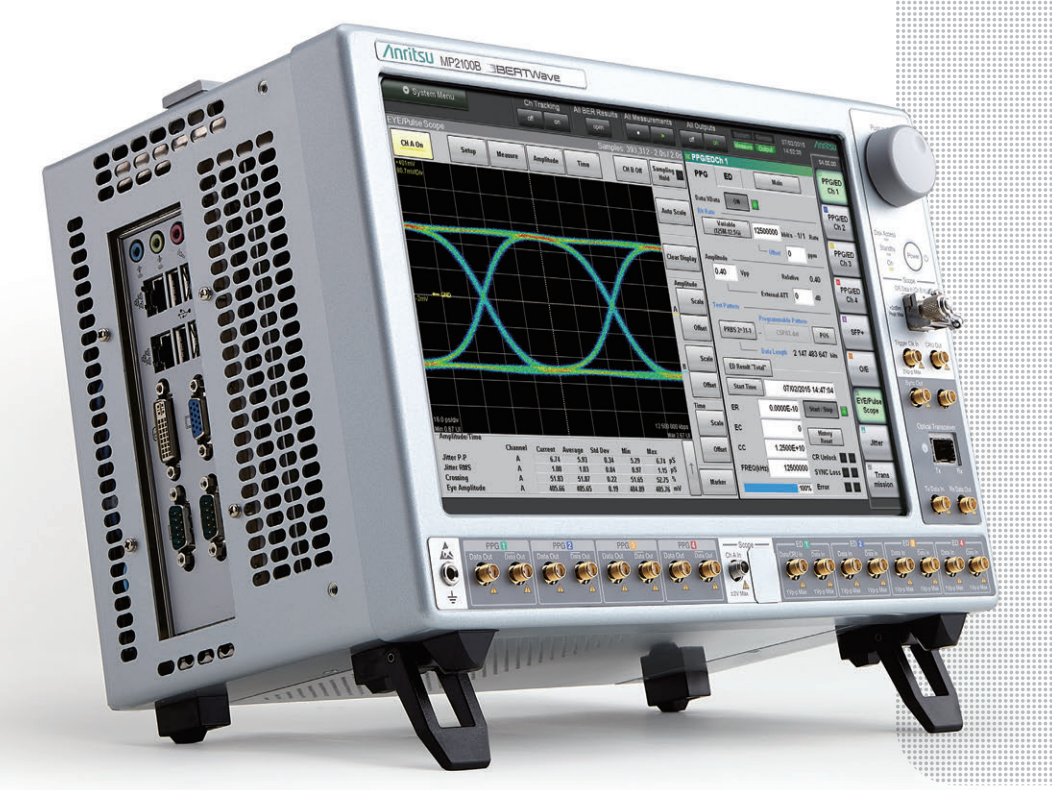 BERT和采樣示波器是評(píng)估光學(xué)通訊系統(tǒng)中使用的光學(xué)模塊時(shí)必要的測(cè)試儀。以前在評(píng)估QSFP+和SFP+等模塊時(shí),需要分別配置BERT和采樣示波器。現(xiàn)在有了 BERTWave MP2100B,其多合一設(shè)計(jì)將多達(dá)4通道的BERT和采樣示波器集成于一個(gè)小巧的18-cm深的單一機(jī)柜中,大大削減了設(shè)備投資成本,節(jié)省了作業(yè)空間。此外,使用 BERTWave MP2100B 時(shí),無(wú)需變更連接線即可同步進(jìn)行BER測(cè)量、眼圖模板測(cè)試和眼圖分析,從而縮短了測(cè)量時(shí)間。而且,BER測(cè)量通道可擴(kuò)展至四個(gè),4通道BER測(cè)量、眼圖模板測(cè)試和眼圖分析可同步進(jìn)行。最后,內(nèi)置的SFP+模塊插槽可無(wú)需使用外部光源。