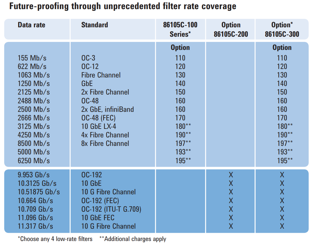 ? ??設計適合您應用的模塊:四個低數據速率濾波器(選件 100)、多 9G 濾波器(選件 200)的組合,或低數據速率濾波器和多 9G 濾波器的組合(選件 300)